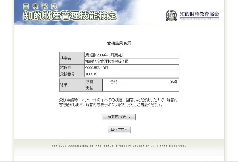 試験結果が発表された旨のメールを受け取ったので、結果を確かめるべく、専用ページにログインしてみると・・・。