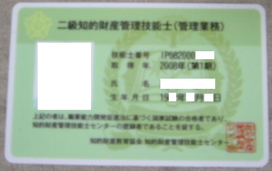 知的財産管理技能検定の2級試験の登録証が届きました。